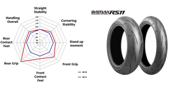 Based on the R11 race tyres, the RS11 delivers razor-sharp handling and impressive mid-corner stability. It rewards hard braking and aggressive inputs while maintaining stability at speed.